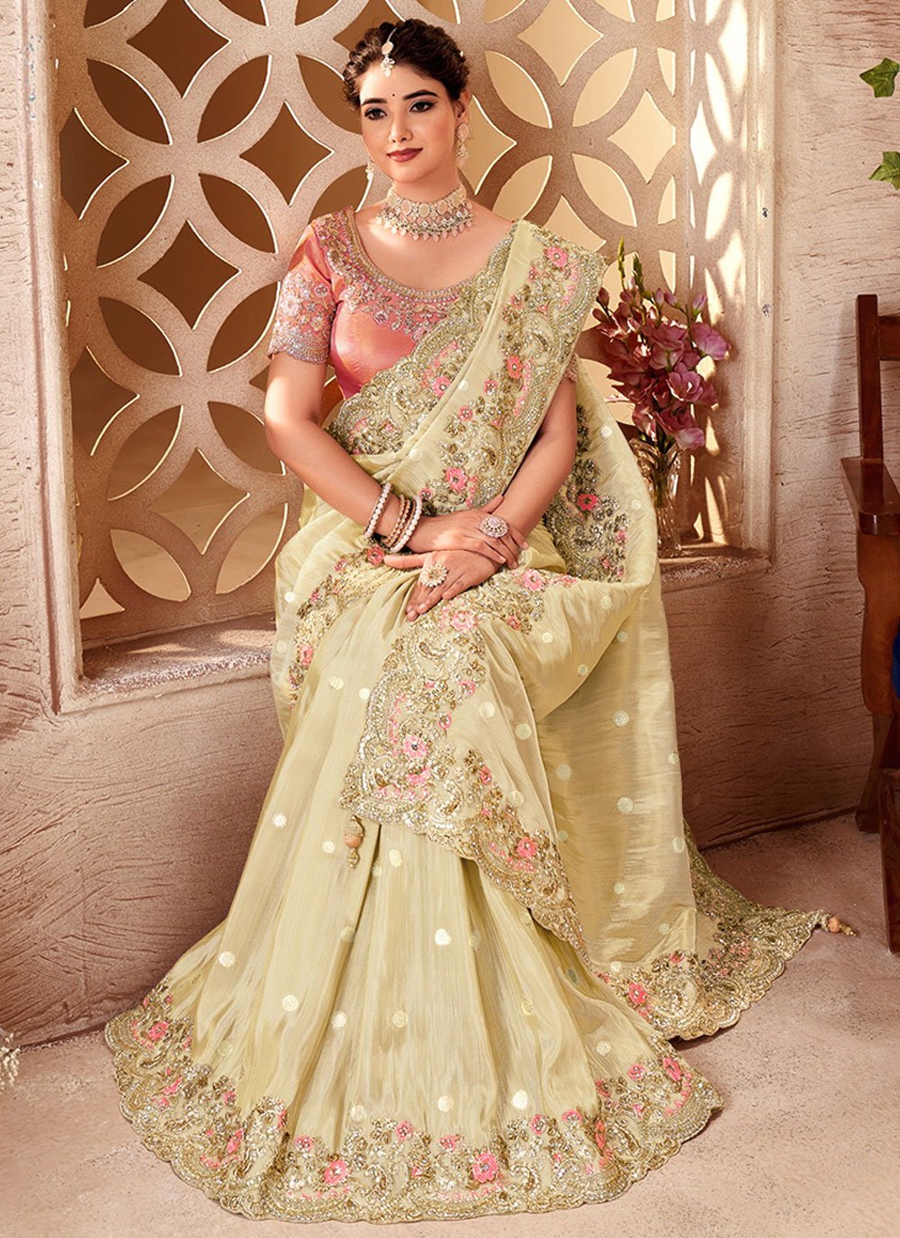 Design and pattern will be on the peak of your magnificence when you attire this beige tissue and viscose classic saree. The ethnic in the dress adds a sign of splendor statement with your look. Comes with matching blouse.