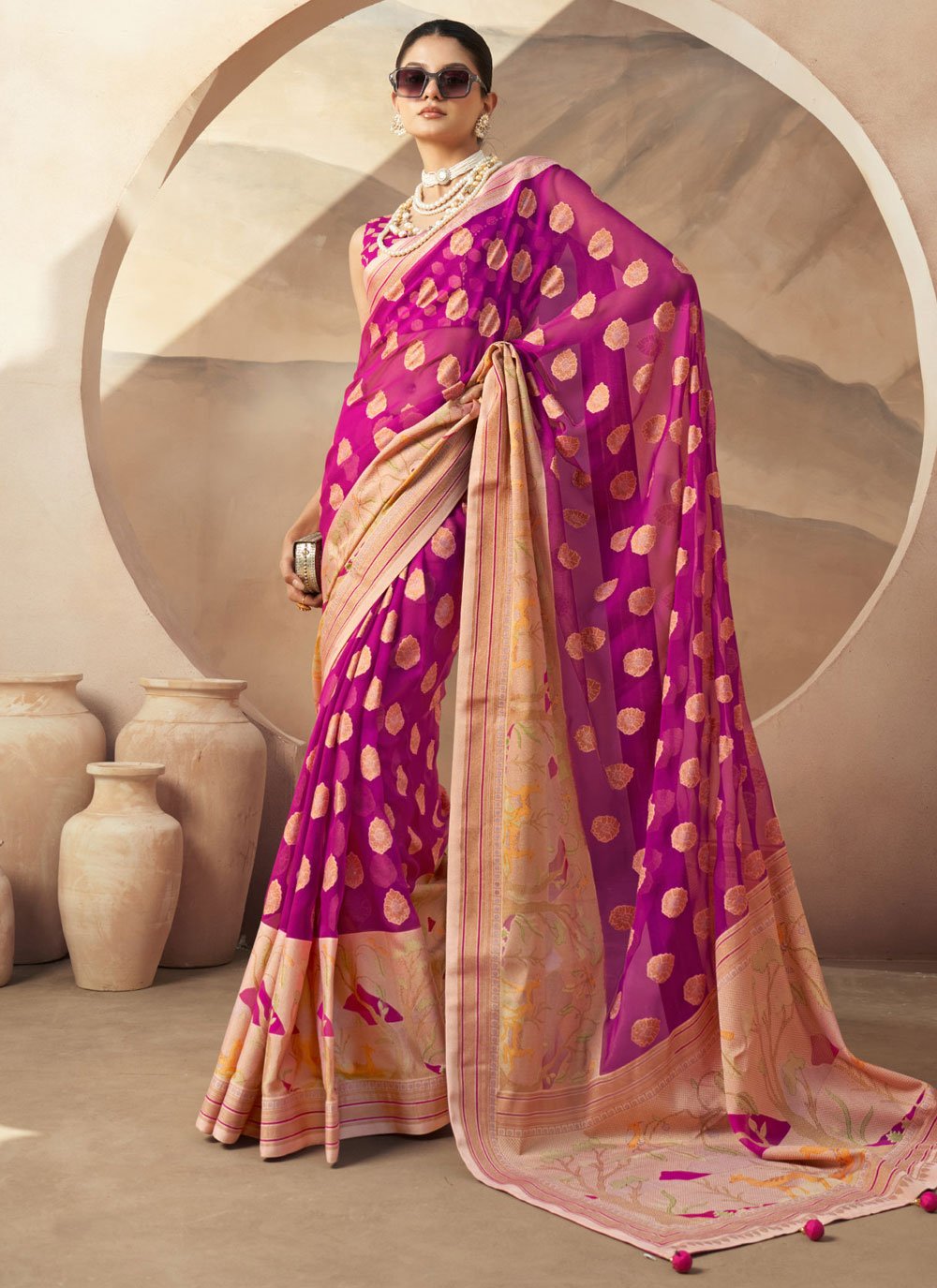 Magenta and Rani Georgette Weaving Work Classic Saree for Ceremonial