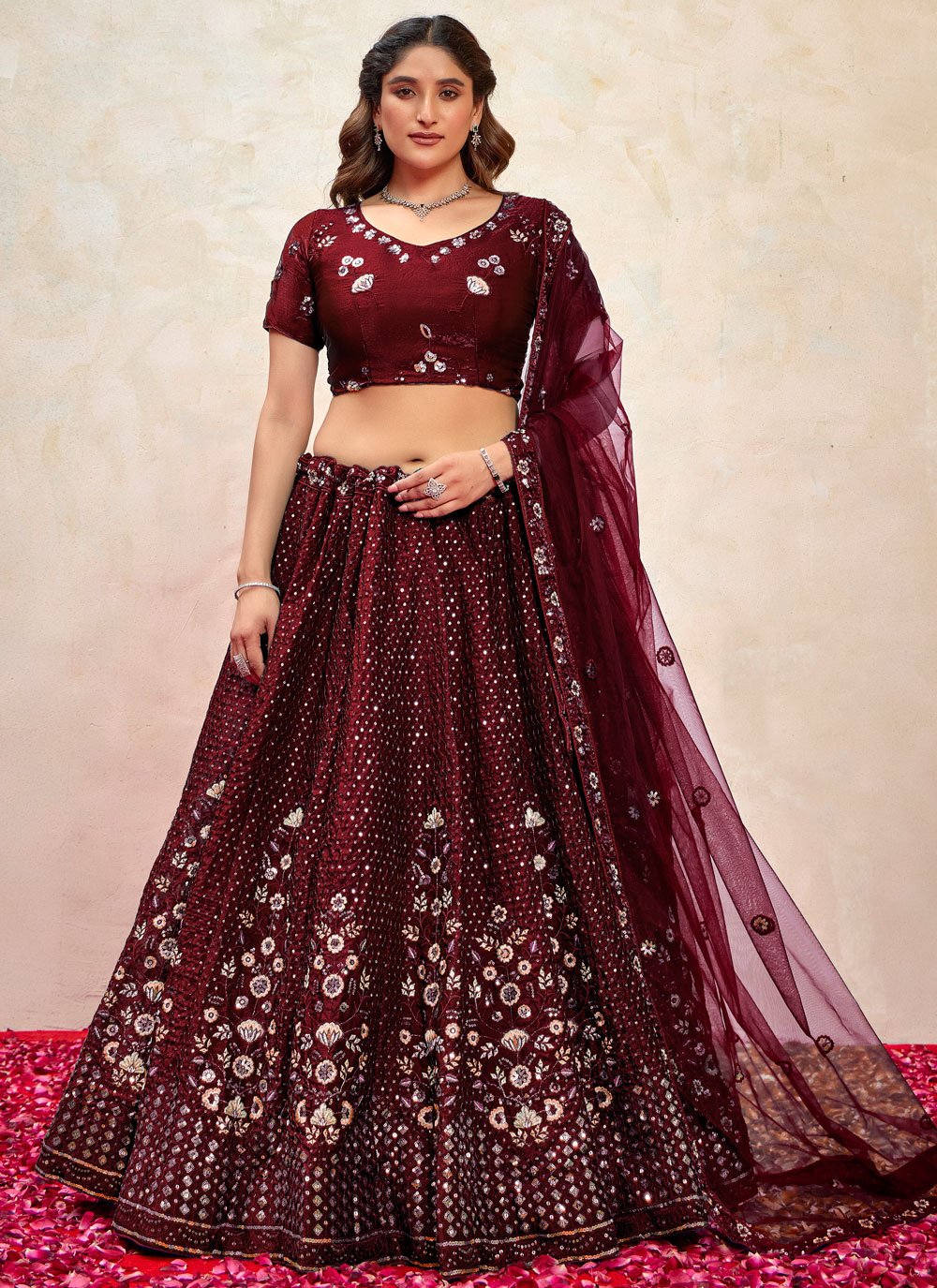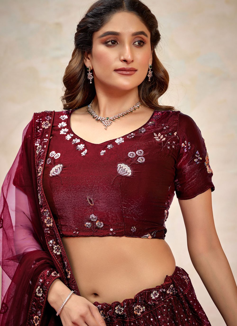 Maroon Silk Lehenga Choli with Embroidered and Sequins Work
