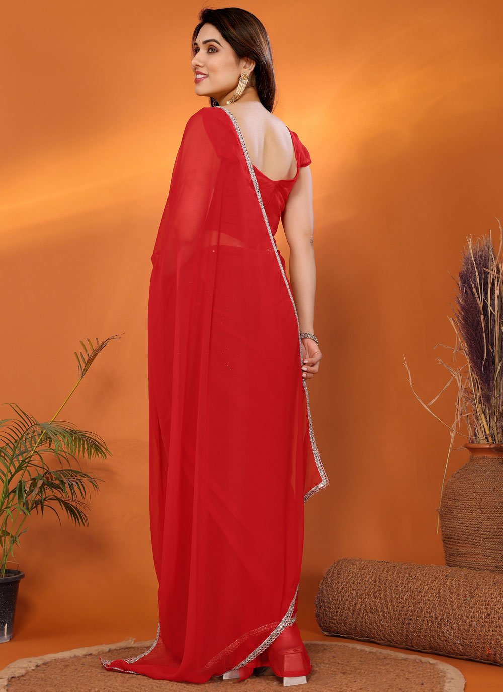 Paramount Red Georgette Trendy Saree